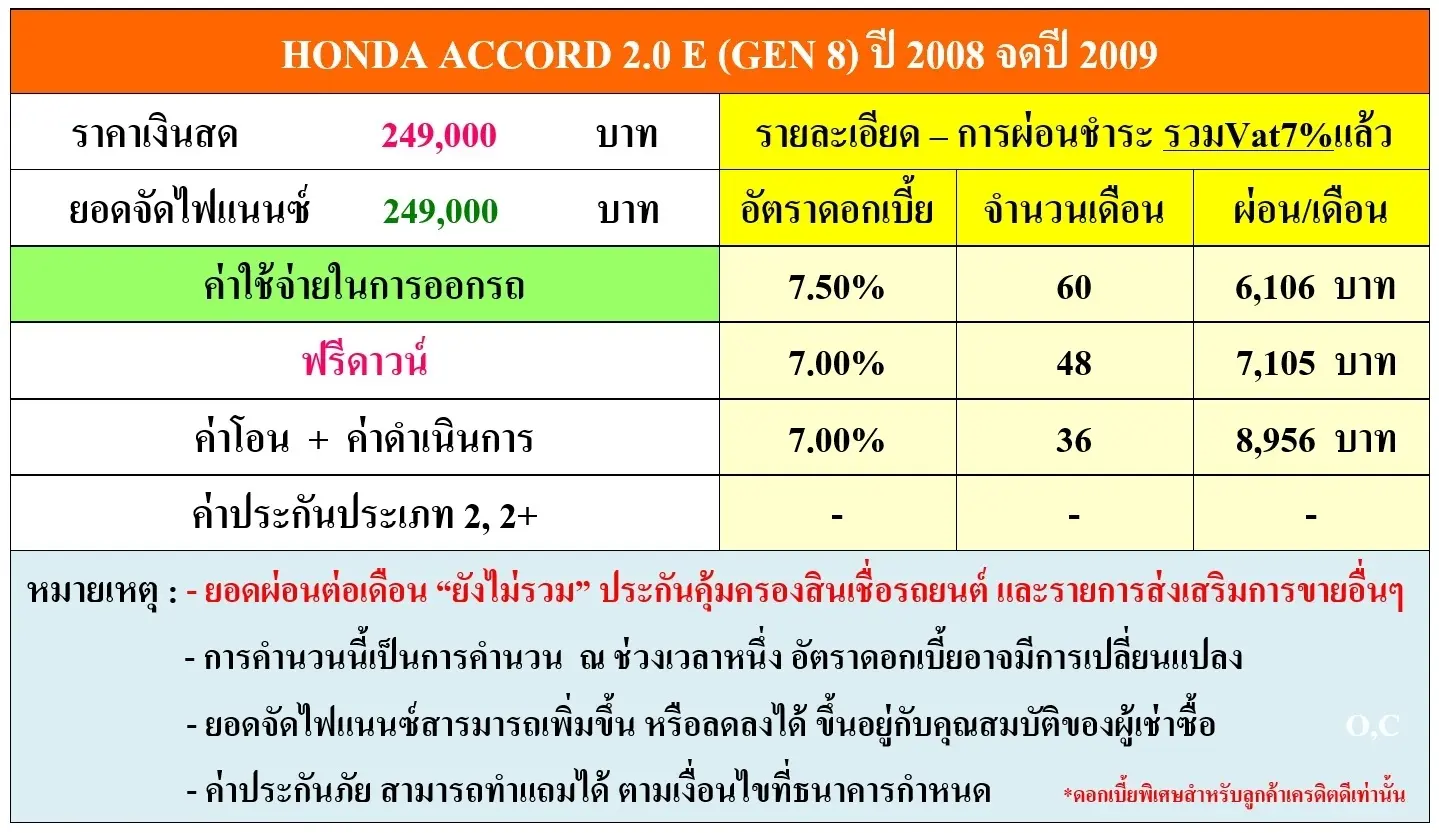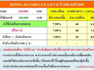 HONDA ACCORD 2.0 E (GEN 8) ปี 2008 จดปี 2009 เกียร์AUTO HONDA ACCORD 2.0 E (GEN 8) ปี ...