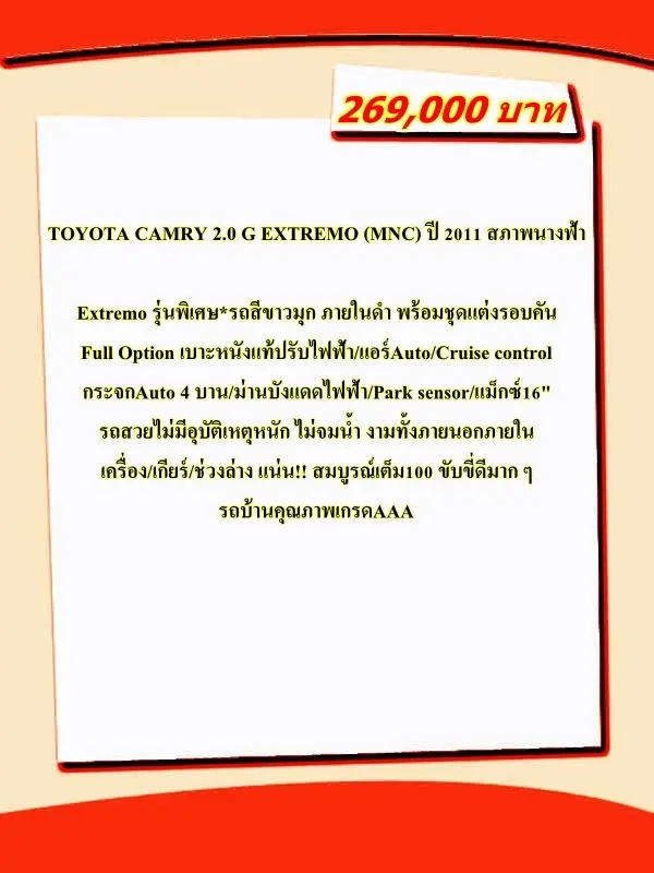 - Full Option เบาะหนังแท้ปรับไฟฟ้า/แอร์Auto/Cruise control
