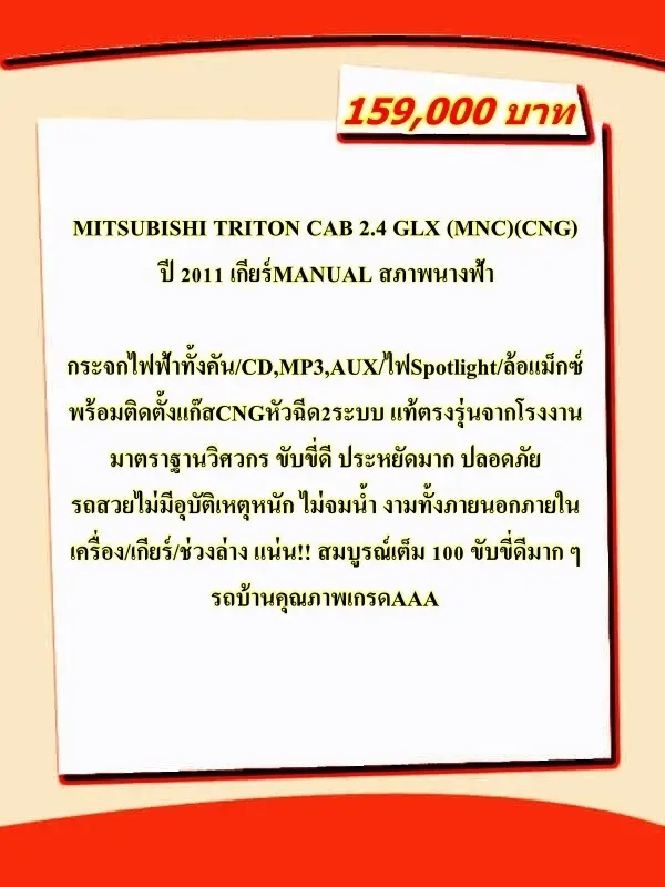 MITSUBISHI TRITON CAB 2.4 GLX (MNC)(CNG) ปี 2011 เกียร์MANUAL MITSUBISHI TRITON CAB 2.4 GLX ...
