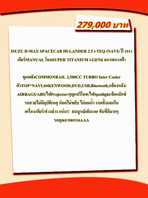 • ISUZU D-MAX SPACECAB HI-LANDER 2.5 i-TEQ (NAVI) ปี 2011