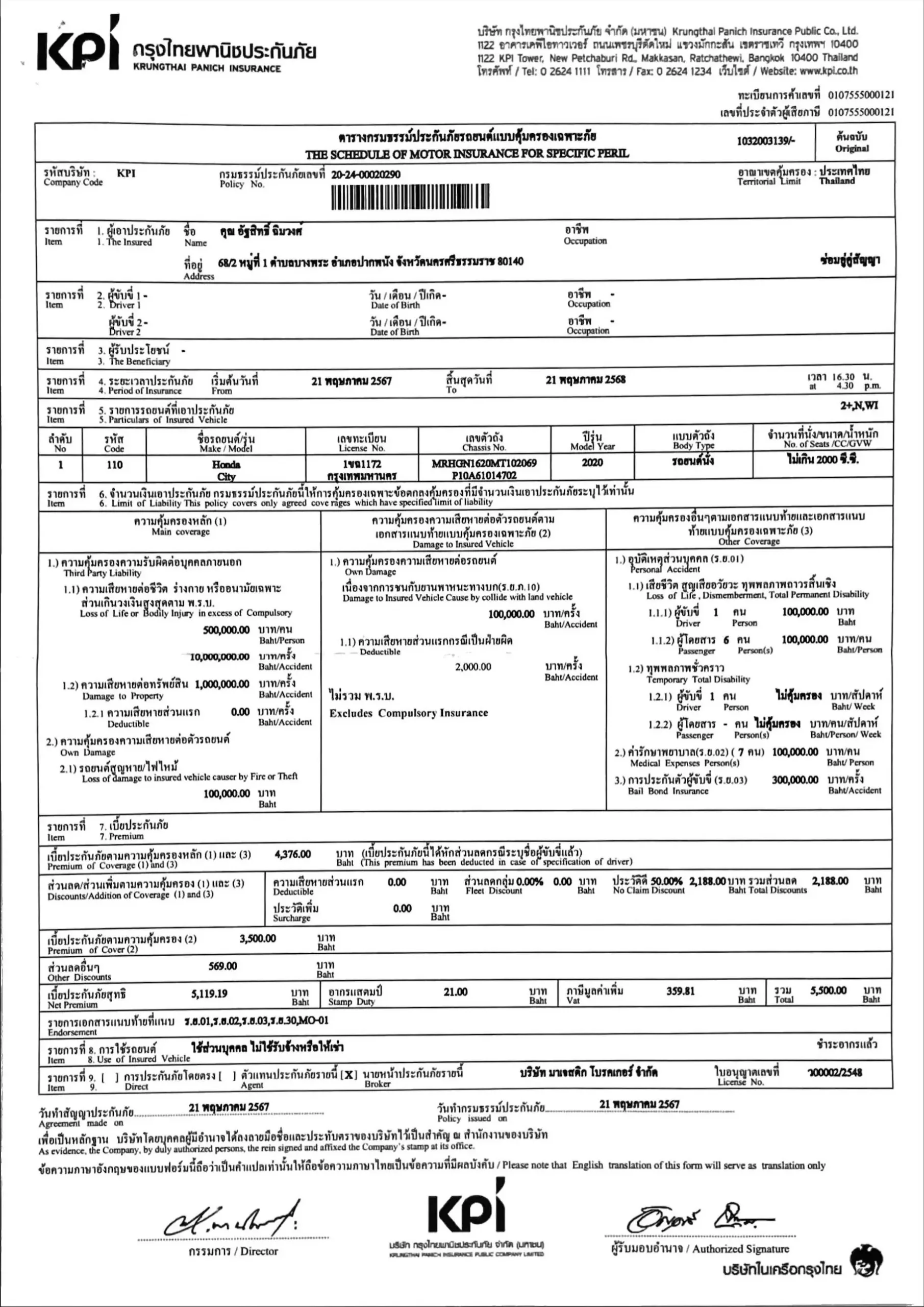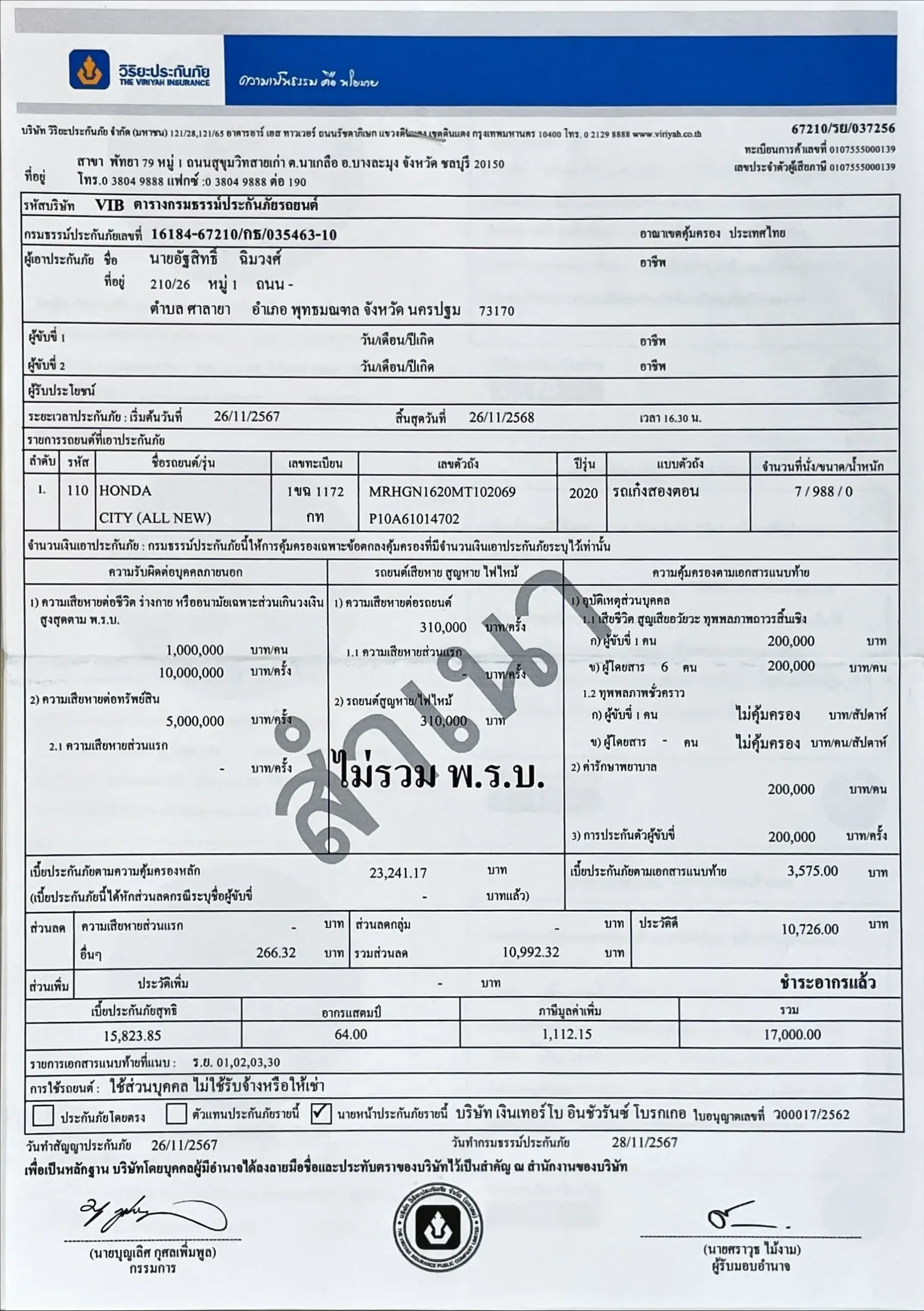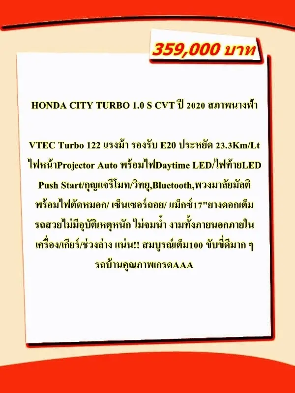 (ถ้ามีชนหนัก พลิกคว่ำ จมน้ำ ยินดีรับคืนในราคาซื้อขาย)