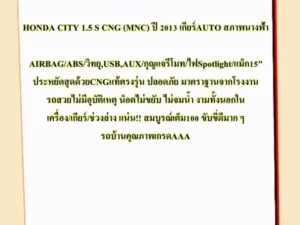 HONDA CITY 1.5 S CNG (MNC) ปี 2013 เกียร์AUTO HONDA CITY 1.5 S CNG (MNC) ปี ...