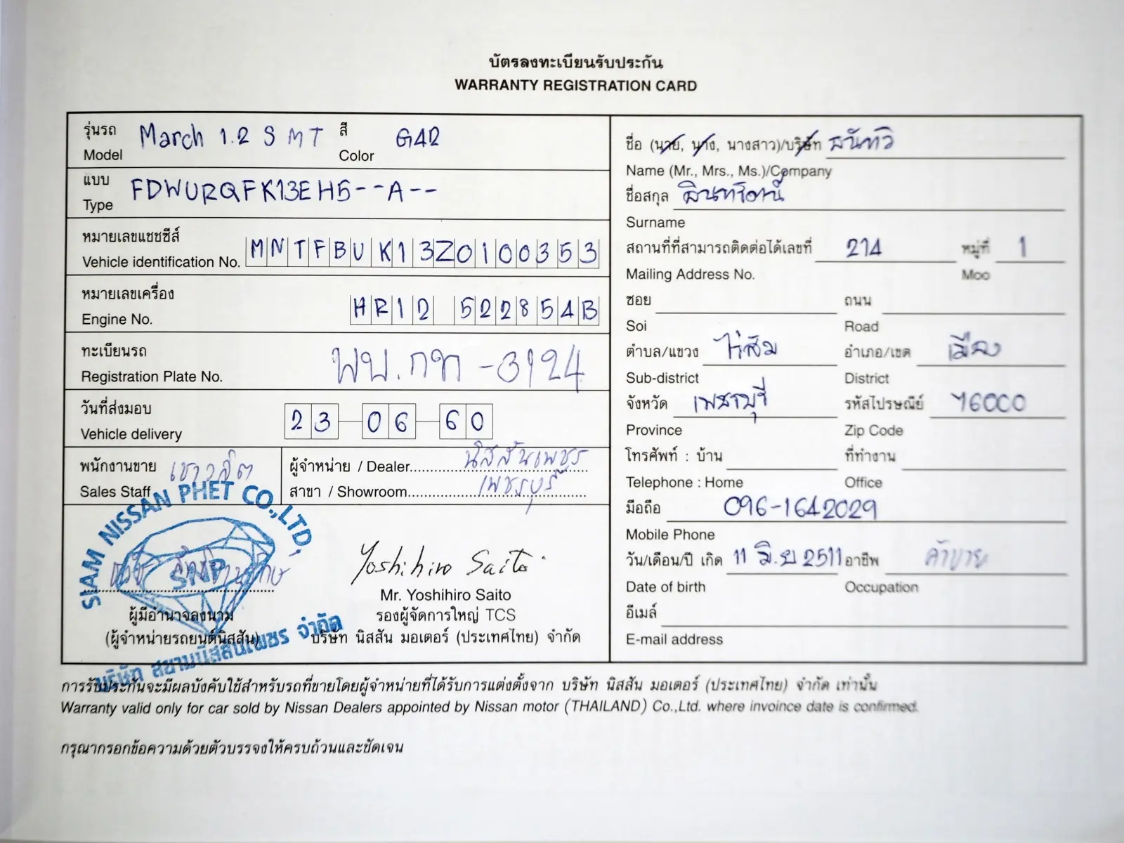 (ถ้ามีชนหนัก พลิกคว่ำ จมน้ำ ยินดีรับคืนในราคาซื้อขาย)