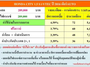 • HONDA CITY 1.5 S i-VTEC ปี 2016 เกียร์AUTO