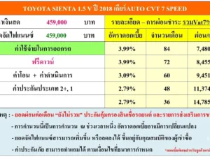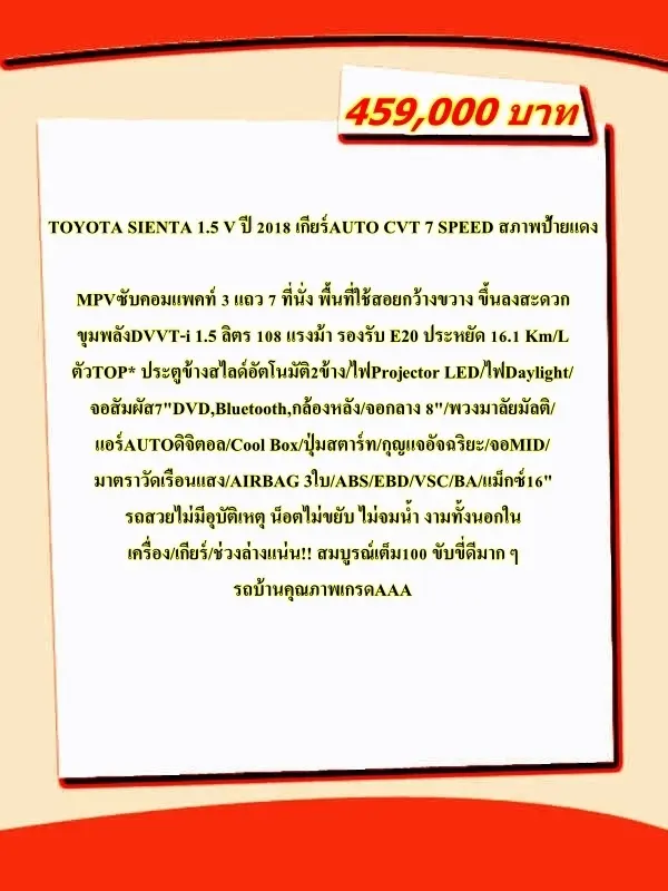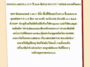 TOYOTA SIENTA 1.5 V ปี 2018 เกียร์AUTO CVT 7 SPEED สภาพป้ายแดง TOYOTA SIENTA 1.5 V ปี 2018 เก...